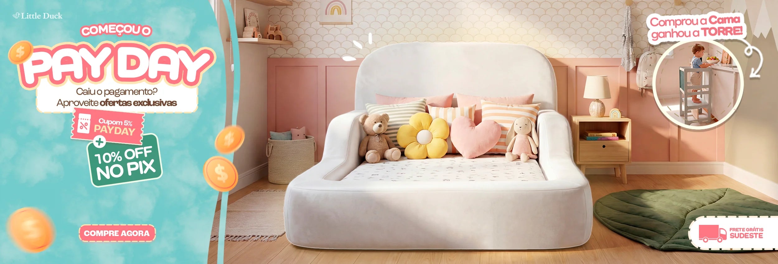 Não é só um sofá! É uma ferramenta de aprendizado. O Little Duck estimula a criatividade, o desenvolvimento motor e muito mais. Que tal uma brincadeira que também educa?